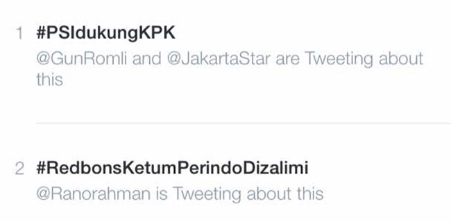tanda pagar alias tagar #PSIdukungKPK menjadi Trending Topics sejak