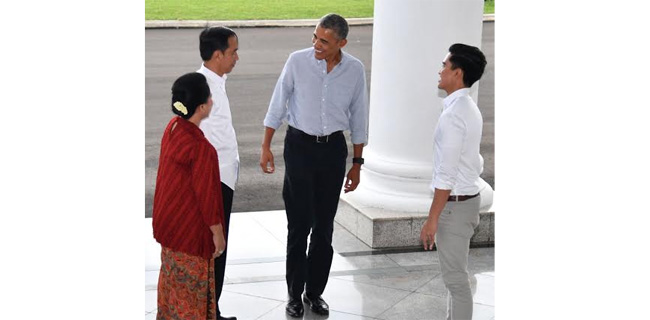 Obama yang mengenakan kemeja lengan panjang berwarna biru muda dipadukan dengan celana panjang berwarna gelap, tiba di Istana Kepresidenan Bogor pada pukul 15.30 WIB. Ia mengisi buku tamu terlebih dahulu sebelum memasuki ruang Garuda Istana Kepresidenan Bogor untuk kemudian berbincang santai di beranda belakang.