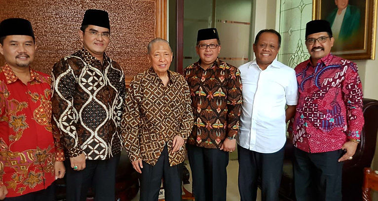 Hasto datang bersama Sekjen Bamusi Falah Amru serta sejumlah pengurus DPP PDI Perjuangan, dan rombobgan disambut langsung oleh Hamzah Haz bersama politikus senior PPP Habil Marati.