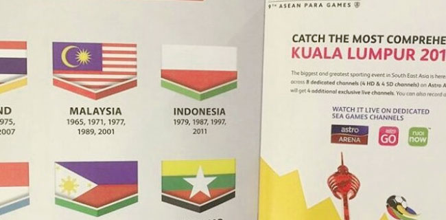 Diketahui kemudian, cetakan bendera Indonesia terbalik itu termuat pada buku suvenir pembukaan SEA Games ke-29 yang dibagikan pada tamu undangan. Bendera terbalik berada pada halaman 80. Halaman itu untuk menandakan negara mana yang sudah menjadi tuan rumah SEA Games. Bendera Indonesia yang mestinya merah putih terlihat menjadi putih merah. Kesalahan mencetak bendera ini hanya terjadi pada Indonesia.