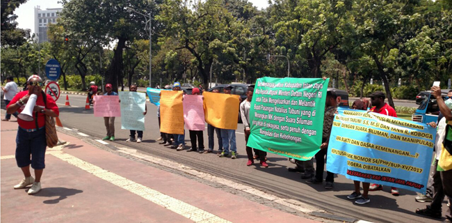 "Kami meminta SK pelantikan bupati dan wakil bupati ditahan dulu dan dilakukan pemilu ulang," kata Anner kepada wartawan di depan Kantor Kemendagri, Gambir, Jakarta (Jumat, 8/9).