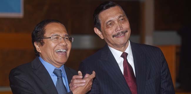 "Kadang-kadang saya suka marah juga melihat beliau ini, tetapi orang paten juga dia. Ya sudahlah," ujar Luhut yang kembali disambut senyuman dari Rizal Ramli.