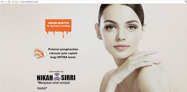 nikahsirri.com dimana setiap perempuan yang menyatakan siap dinikahi secara siri harus perawan dan berusia 14 tahun menyiratkan unsur praktik prosÂtitusi yang mengeksplotasi anak di bawah umur dan berkedok pernikahan siri.