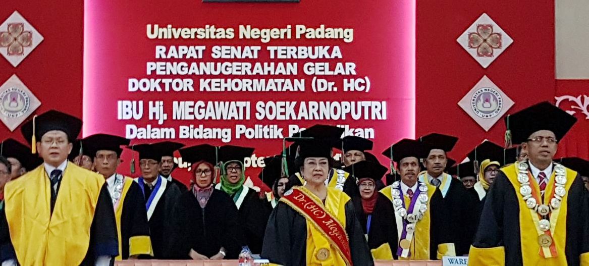 Demikian disampaikan Ketua Umum PDI Perjuangan Megawati Soekarnoputri saat menyampaikan pidato penerimaan gelar doktor honoris causa dari Universitas Negeri Padang (Rabu, 27/9).