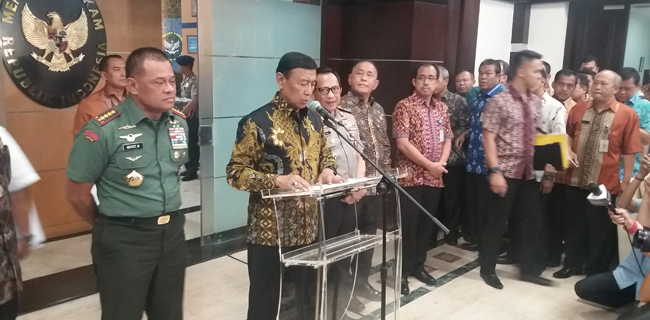 Begitu Menko Polhukam Jenderal (purn) Wiranto dalam konferensi pers di kantornya, Jakarta, Jumat (6/10).