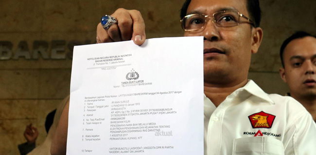 Iwan Sumule juga sudah melaporkan Victor Laiskodat ke Bareskrim Polri pada 4 Agustus 2017. Victor Bungtilu Laiskodat dilaporkan melanggar UU 19/2016 tentang Informasi Transaksi Elektronik dan UU 40/2008 tentang Penghapusan Diskriminasi Ras dan Etnis pada 4 Agustus 2017.