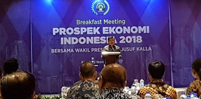 . Wakil Presiden Jusuf Kalla menjadi pembicara kunci dalam Breakfast Meeting bertema Prospek Ekonomi Indonesia 2018 yang diselenggarakan Persatuan Wartawan Indonesia (PWI) di Hotel Aryaduta, Jakarta, Kamis pagi (2/10).