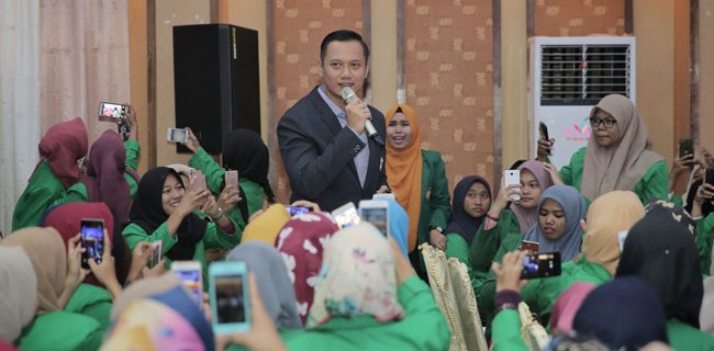 AHY memberikan kuliah umum sambil berjalan mengelilingi setiap sudut ruangan dan berinteraksi dengan para mahasiswa. Kesempatan itu tidak disia-siakan peserta kuliah umum. Mereka berebut meminta AHY untuk "selfie".
