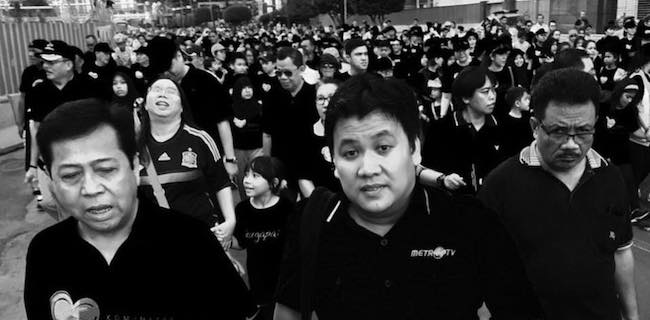 Metro TV dengan papa. Indahnya kekompakan dan kerjasama," tulis mantan Ketua Aliansi Jurnalis Independen (AJI) Jakarta ini.