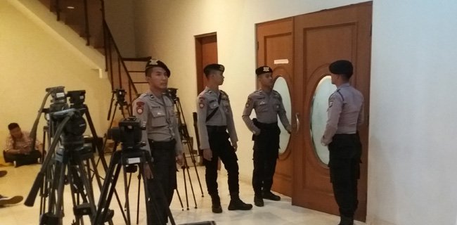 Pantauan di lokasi, ada puluhan personel kepolisian berjaga-jaga di dua depan pintu masuk utama Aula DPP Partai Golkar. Awak media juga sudah ramai menunggu.