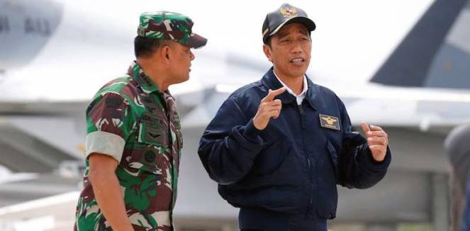 Politik negara mencuat dalam pidato Jokowi di acara HUT TNI ke-72 di Dermaga Indah Kiat, Cilegon, Banten, Kamis (5/10).