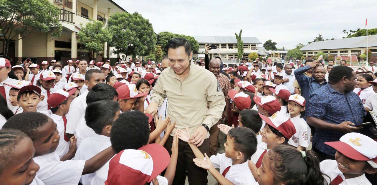 "Kalian belajar yang benar ya. Harus semangat. Harus rajin belajarnya supaya bisa mencapai cita-cita kalian," seru AHY.