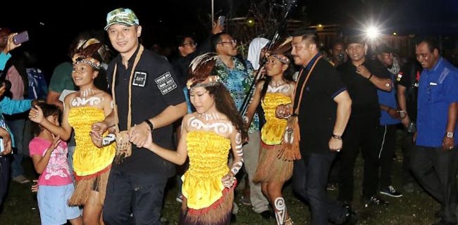 Dalam suasana yang riang, para penari tarian Yos Pan, mengajak AHY untuk ikut menari bersama mereka dikuti oleh masyarakat yang hadir sambil mengelilingi api unggun yang sudah dinyalakan. Suasana semakin akrab dan hangat.