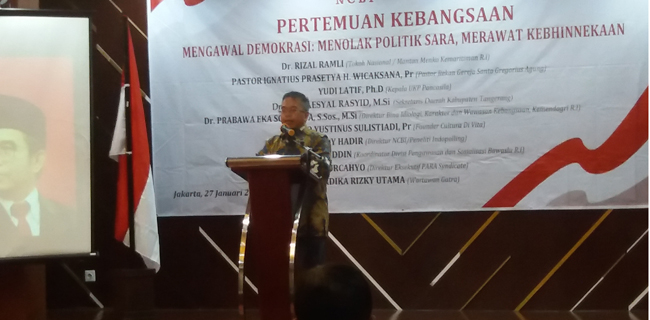 Demikian dikatakan Kepala Unit Kerja Presiden Pembinaan Ideologi Pancasila (UKP-PIP) Yudi Latif dalam pidatonya di Pertemuan Kebangsaan yang digelar Nation and Character Building Institute (NCBI) tema "Mengawal Demokrasi: Menolak Politik SARA, Merawat Kebinekaan," di kawasan Matraman, Jakarta, Sabtu (27/1).