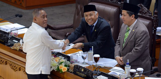 Ryamizard yang mengenakan kemeja warna putih dipadu celana bahan berwarna hitam datang ke gedung wakil rakyat untuk menghadiri rapat dengan Komisi I DPR RI dan Panglima TNI.