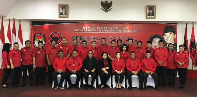 Senin sore, KPU yang dipimpin langsung Ketua KPU Arief Budiman dan Komisioner KPU Ilham Saputra serta disaksikan Ketua Bawaslu Abhan, melakukan verifikasi ke kantor DPP PDI Perjuangan, di Lenteng Agung, Jakarta Selatan.