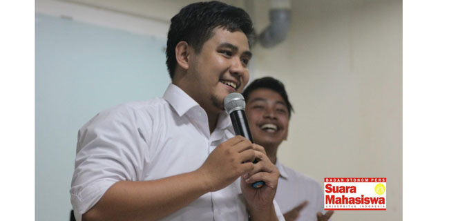 Zaadit Taqwa langsung beken setelah aksi nekatnya mengacungkan 'kartu kuning' ke arah Presiden Jokowi dalam acara Dies Natalis ke-68 Universitas Indonesia di Balairung UI, Depok, jelang siang tadi (Jumat, 2/2).