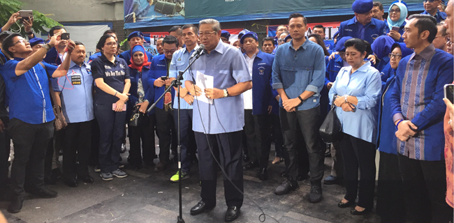 Ke Bareskrim, SBY tidak mau melibatkan ratusan kader Demokrat yang sudah berkumpul sejak siang tadi di kantor DPP Demokrat, Wisma Proklamasi, Menteng, Jakarta.