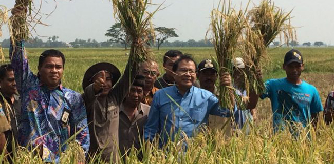 "Jangan jadi raja tega gitu loh," ujar RR saat panen padi bersama kelompok petani di Desa Penggalang, Kecamatan Ciruas, Kabupaten Serang, Banten, Selasa (13/2).