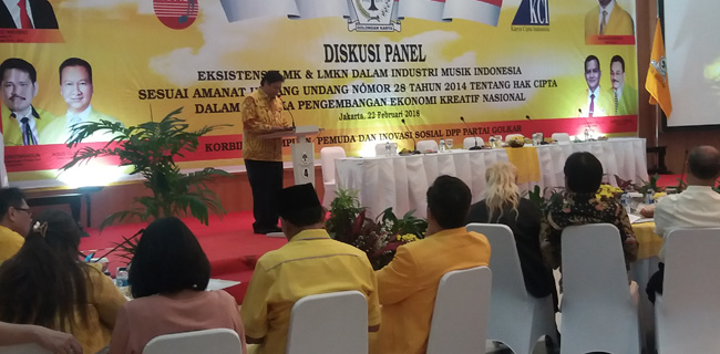 Ketua Umum Partai Golkar, Airlangga Hartarto, dalam sambutan pembukaan diskusi panel mengatakan, acara tersebut menjadi mediasi antara pemilik hak cipta dengan pengguna dan industrinya.