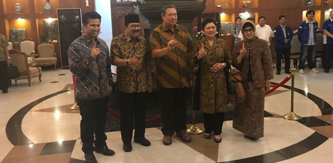 "InsyaAllah pasangan Kofifah-Emil menang. Begitu SBY berdoa dan menyampaikan harapannya saat tiba di Bandara Juanda Sidoarjo," sebut Ferdinand.