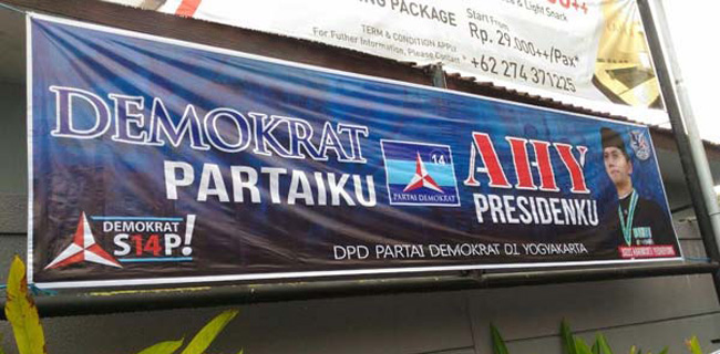 Spanduk dengan warna dasar biru lengkap dengan logo Partai Demokrat itu terlihat terpampang di jalan utama kota Yogyakarta, Bantul, Gunung Kidul, Sleman dan Kulon Progo. Pada sisi tengah bawah tertulis spanduk itu dibuat DPD Partai Demokrat DI Yogyakarta. Foto AHY di sebelah kanan spanduk terpampang jelas dengan mengenakan peci hitam, dengan tulisan AHY Presidenku.