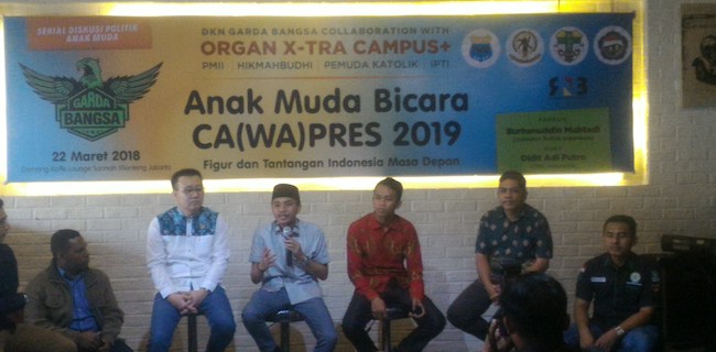 Acara yang mengupas suara dan pandangan-pandangan politik kaum muda pada Pilpres 2019 turut menghadirkan sejumlah perwakilan organisasi mahasiswa ekstra kampus, seperti PMII, Hikmahbudhi, GMKI, dan IPTI.