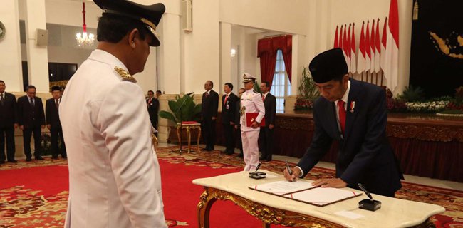 Presiden Jokowi melantik Isdianto sebagai Wagub Kepri, di Istana Negara, Jakarta, Selasa (27/3).