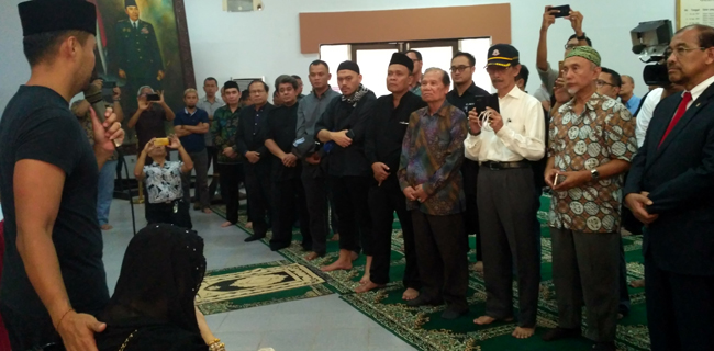 Usai jenazah sang ayah disalatkan, Anjas menyampaikan sambutan duka mewakili keluarga.