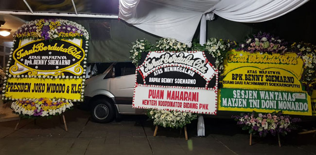 Namun dari pantauan di lokasi, hingga pukul 21.45 WIB, Jokowi tidak juga hadir. Tampak karangan bunga ucapan belangsungkawa dari Jokowi dan keluarga terpampang di halaman rumah. Di sampingnya terlihat karangan bunga kiriman Menko PMK yang juga keponakan Rachmawati, Puan Maharani.
