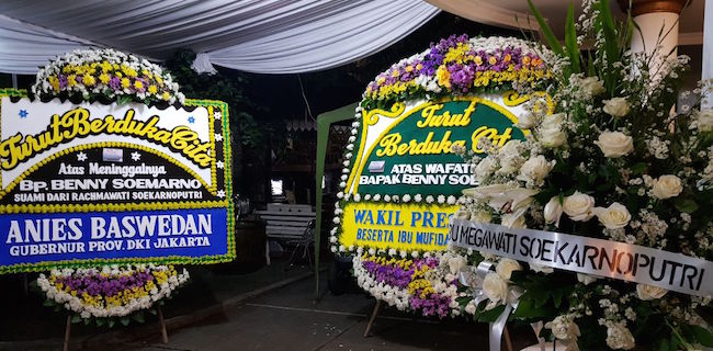 Karangan bunga dari Presiden Joko Widodo di tempatkan di sisi kiri bagian dalam halaman rumah, sementara karangan bunga dari Wakil Presiden Jusuf Kalla diletakkan di sebelah kanan. Di antara keduanya terdapat karangan bunga dari Ketua Umum PDI Perjuangan yang juga mantan presiden Megawati Soekarnoputri.
