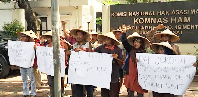 "Ratusan hektar lahan milik warga digusur, setiap menggusur selalu ada aparat kepolisian bersenjata lengkap. Sehingga kami tidak berdaya," kata Ratman warga Desa Salino yang ikut mengadu ke Komnas Ham.