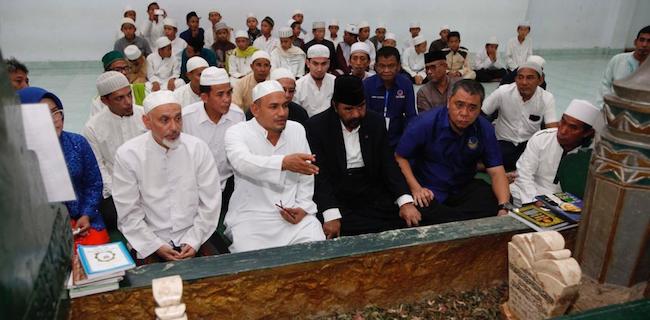 Dalam kunjungan ini, Surya Paloh menyempatkan diri berziarah ke makam pendiri Pondok Pesantren Al Khairaat Habib Idrus bin Salim Aldjufrie yang merupakan kakek dari Seggaf Aldjufrie.