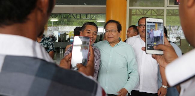 Kehadiran ekonom senior Dr Rizal Ramli di Bandara Sultan Babulah, Ternate, Maluku Utara, Rabu (11/4) disambut hangat warga.