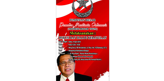 RR bersama Ketua Umum PB Pemuda Muslim Ervan Taufiq akan menjadi pembicara diskusi, di Wong Solo, Jl. RE Martadinata (Jl. Riau) No. 152 Bandung, pada pukul 12.00-14.00 WIB.