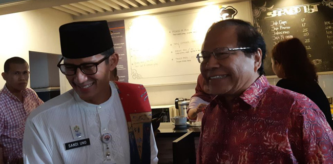 Ia juga mengungkapkan pertemuannya dengan mantan Menko Perekonomian dan Menko Maritim itu dalam rangka menyerap aspirasi tokoh bangsa. Dalam pertemuan itu, Sandi didampingi beberapa tokoh Gerindra seperti Muhammad Taufik yang menjabat Wakil Ketua DPRD DKI.