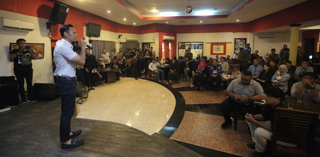 Dia menutup gerilya di Banten dengan acara “Ngobrol Santai Bareng AHY†di Cafe Fifo, Ciputat, Tangerang Selatan, Selasa (24/4) malam. Dalam giat ini, AHY mendengarkan dan mencatat langsung aspirasi generasi milenial.
