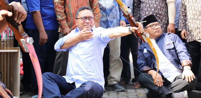 Berbeda dengan panahan modern, panahan tradisional membidik target dengan duduk lesehan. Zulkifli pun duduk lesehan dan membidik target. Pada bidikan ketiga, ketua MPR itu berhasil membidik lingkaran tengah target disambut tepuk meriah hadirin.