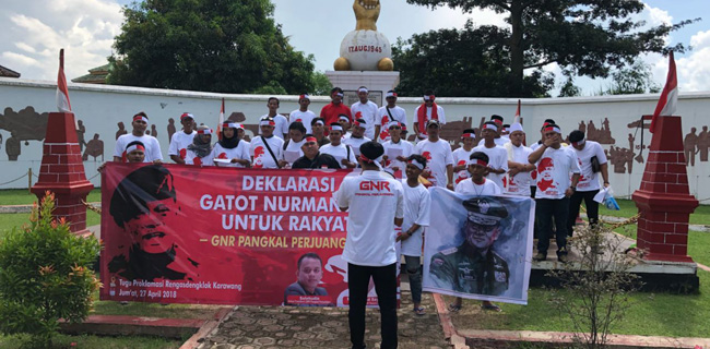 Hari ini, deklarasi dukungan agar Gatot menjadi calon presiden 2019-2024 dilakukan oleh GNR Karawang, Jawa Barat.