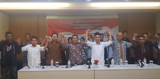 "Sekelompok orang dengan kaos #GantiPresiden2019 dalam kegiatan tersebut melakukan perilaku diskriminasi, intimidasi dan persekusi terhadap kelompok yang berseberangan pendapat," tegas Adnan dalam deklarasi dan konferensi pers.