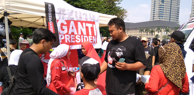 Deklarasi relawan nasional #2019GantiPresiden di dekat Patung Kuda Arjuna Wiwaha, Monas, Jakarta Pusat, yang digelar sejak pukul 9 pagi tadi, berakhir sudah.