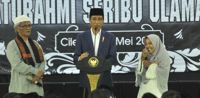 Begitu pesan Presiden Joko Widodo saat memberikan sambutan pada Harlah ke 93 Yayasan Al Khairiyah dan Silaturahim Seribu Ulama Banten, di Pondok Pesantren Al Khairiyah, Citangkil, Cilegon, Banten, Jumat (11/5) petang.
