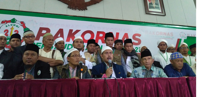 Ketua Umum Dewan Pengurus Pusat Persaudaraan Alumni 212, KH Slamet Ma'arief, mengungkapkan hasil pleno Rakornas yang baru saja dilangsungkan.