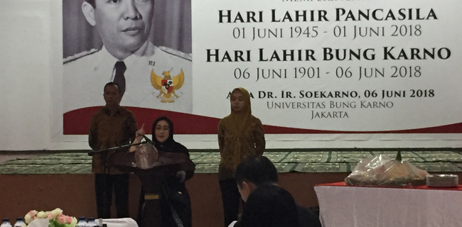 "Padahal dulu Bung Karno mengatakan, kita itu berjuang harus radikal, progresif dan revolusioner," kata Rachma saat sambutan peringatan Hari Lahir Pancasila dan Bung Karno di Universitas Bung Karno, Jakarta, Rabu kemarin (6/6).