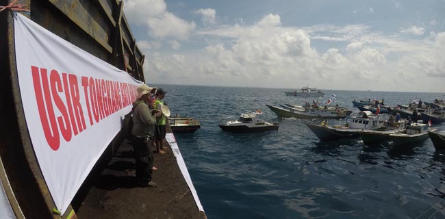 "Dimulai jam sembilan pagi, dengan peserta aksi sebanyak 100 kapal," ujar Husain. Aksi digelar kemarin (Sabtu, 9/6).