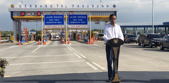 Twitter @pramonoanung. Dalam unggahan yang menampilkan foto Presiden Jokowi sedang memberi sambutan di Exit Tol Pasuruan itu, Pramono menjelaskan bahwa tol yang diresmikan ini membentang sepanjang 20,5 km.