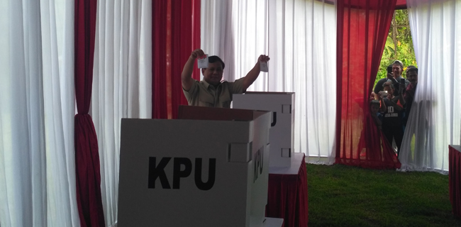 "Bismillah," ujar Prabowo sebelum mencoblos.