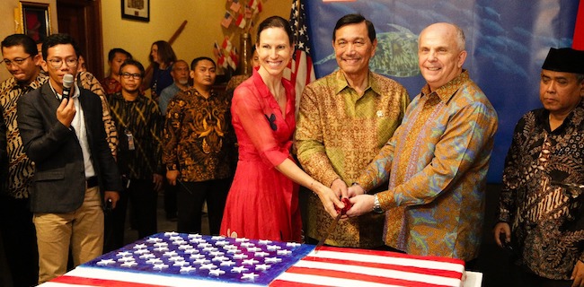 Rasa bangga itu disampaikan langsung Dutabesar AS Joseph R Donovan di hadapan Menteri Koordinator bidang Kemaritiman Luhut Binsar Pandjaitan dalam perayaan Hari Ulang Tahun ke-242 AS di Kedubes AS, Jakarta, Rabu (4/7).