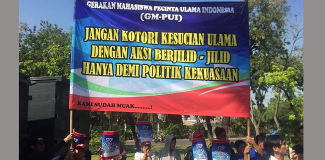 "Saya kira masyarakat sudah cerdas, meski tuntutan yang disampaikan baik, tapi di balik itu ada kepentingan politik, hanya dikemas seolah-olah itu memperjuangkan umat," kata koordinator aksi, Fahmi.