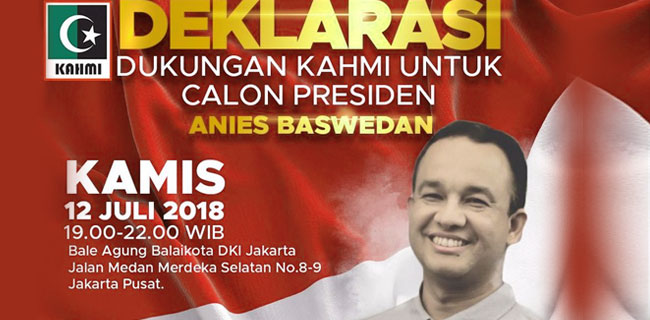 Anies menyebutkan, agenda halalbihalal dengan KAHMI di Balai Kota telah lama dijadwalÂkan. Dia pun tidak mengetahui siapa yang membuat isu terseÂbut. Untuk diketahui, undangan deklarasi dukungan KAHMI untuk Anies beredar di aplikasi group Whatsapp. Di situ tertera bahwa deklarasi akan dilaksanaÂkan di Balai Agung, Balaikota Jakarta, pada Kamis malam puÂkul 19.00 hingga 22.00 itu. Pada undangan itu, tertera pula nama Presidium KAHMI Siti Zuhro dan Sekretaris Jendral KAHMI Manimbang Kahariady.